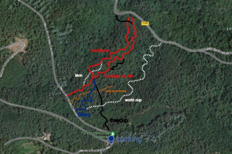 La World cup : comme son nom l’indique, c’est la piste de vtt dh par excellence, de la vitesse sur la partie haut avant de basculer dans les choses sérieuses… Il vaut mieux ne pas avoir ses plaquettes de freins trop usées… elle vous fait retomber sur la route de la neuve comme les autres. Des freeride, il y en a, mais sont gardés secret…