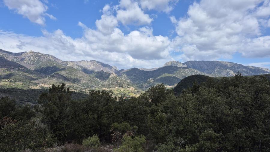 Depuis Olargues, elle emprunte d’abord la liaison n°3 avant de s’élever doucement vers le hameau du Cros. Une petite route ouvre le début du parcours, puis l’itinéraire bascule sur une piste forestière roulante, offrant de belles vues sur les collines du Caroux.