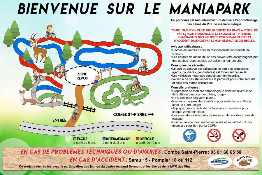 Le Maniapark c’est un parcours aménagé au cœur de la forêt, où l’on vient apprendre à mieux maitriser son vélo tout en s’amusant. Il est