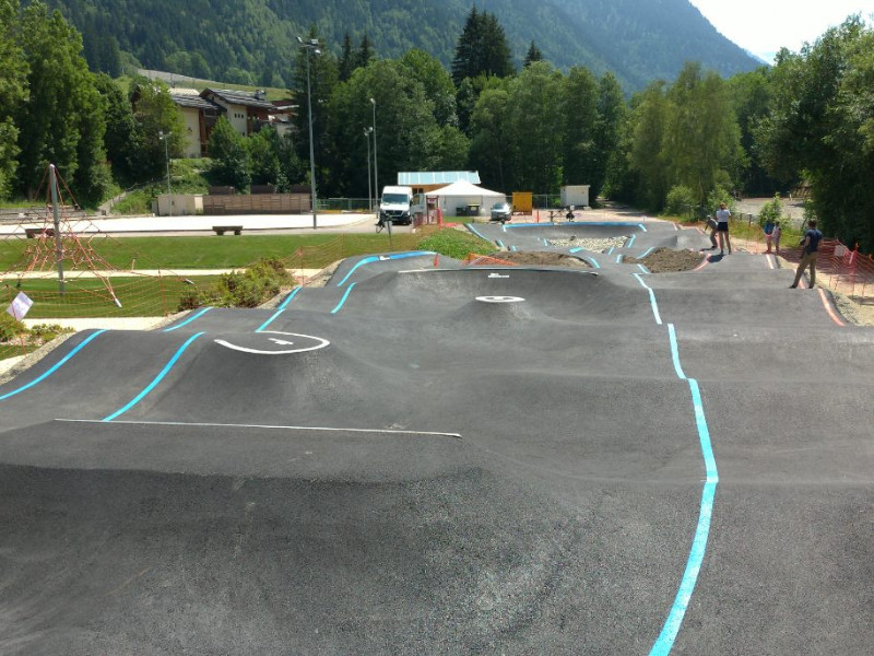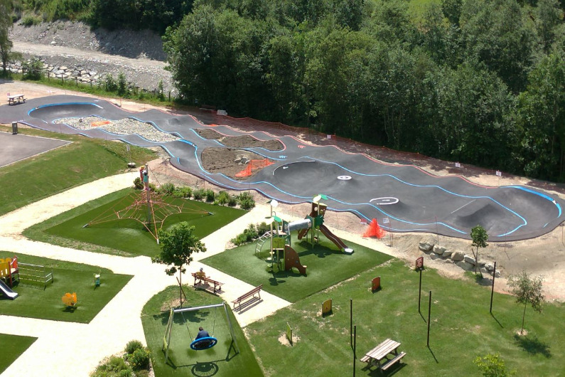Dans une base de loisirs avec rivière et plan et un stade de biathlon avec piste de ski roue à proximité