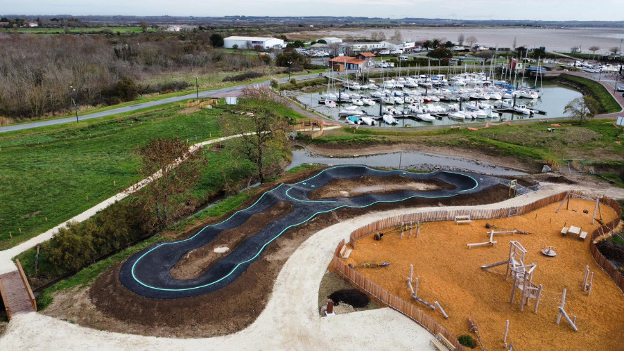 Pumptrack de Meschers sur Gironde à quelques pas de la mer et du port, et bien intégré dans son parc inter-générationnel