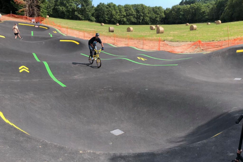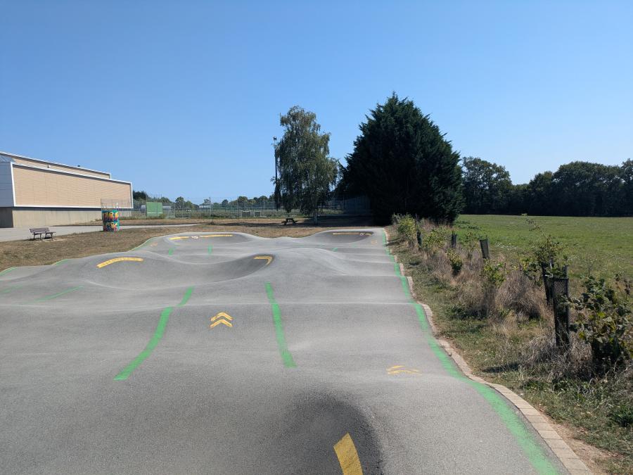 Petit pumptrack assez plat, un peu comme limerzel, mais beaucoup plus roulant en surfskate, et je pense un peu plus rigolo à vélo.