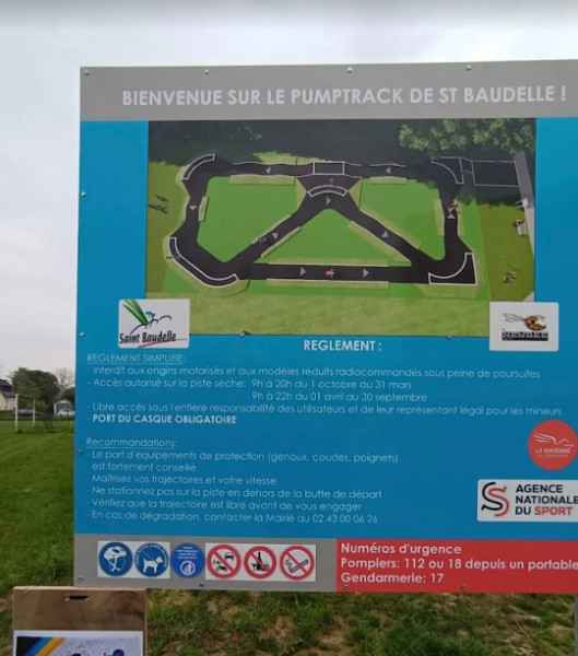 Pumptrack de Saint Baudelle situé à côté de la salle des sports et du stade de foot