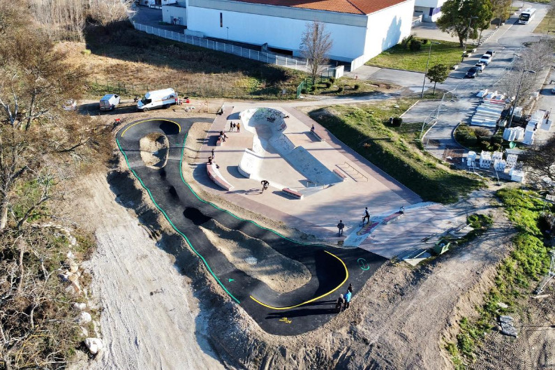 Pumptrack de 100 mètres conçu pour les débutants en complément du petit bowl à côté