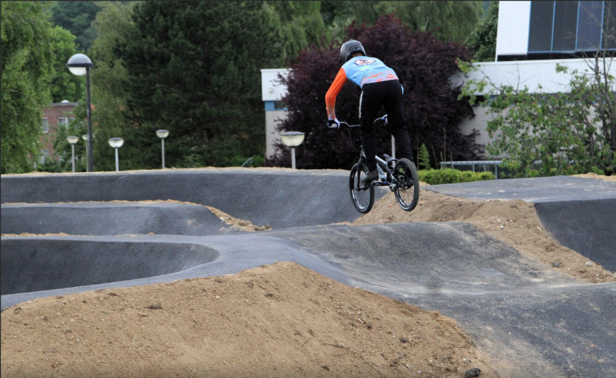 Pumptrack Sint Genesius Rode situé à côté du terrain de foot sur le site sportif du Wauterbos