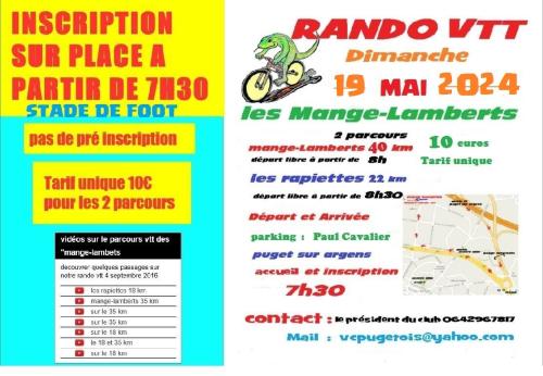 2 Parcous 40km et 22km Accueil et inscription sur place Tarif unique de 10€ Départ et arrivée parking Paul Cavalier