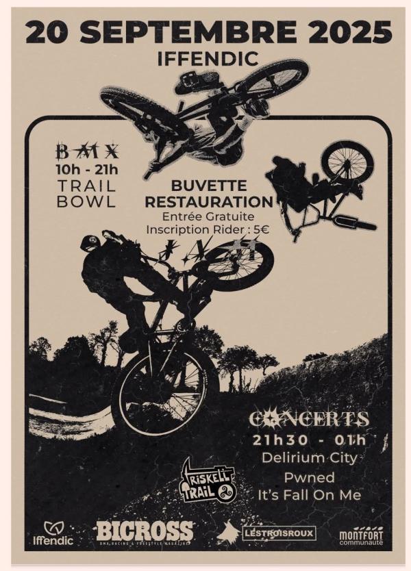 Triskell trail Jam édition 2025, Rdv le 20 septembre pour une session jam de folie, avec concert en fin de journée. Session trail sur la journée et jam bowl/street en nocturne. Catégorie draisienne cette année pour initier les plus petits à l'univers des jam!