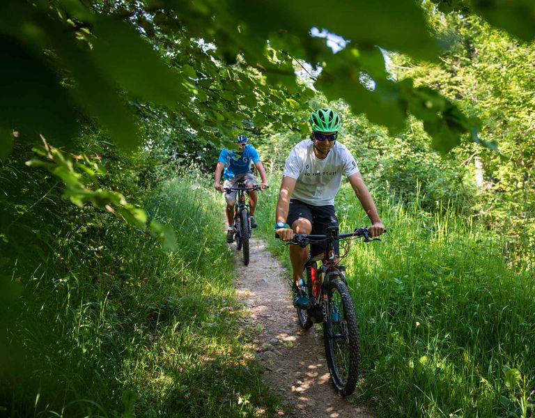 Les itinéraires alternent voies vertes, chemins roulants, sentiers forestiers et passages en alpages, permettant de découvrir un territoire riche en patrimoine et en paysages. Adaptés à tous les niveaux, ces parcours sont parfaits pour une sortie nature, sportive ou plus contemplative, avec de nombreuses possibilités de boucles.
